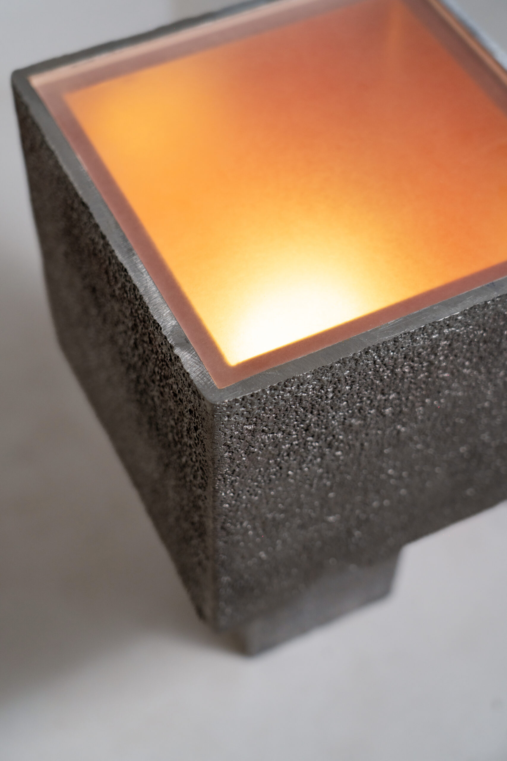 The Monolith Table Lamp transforms raw materials into refined artistry. With its tactile cast aluminium body and subtle glow from the acrylic diffuser, it offers a sophisticated balance of strength and softness, elevating any space with its presence.